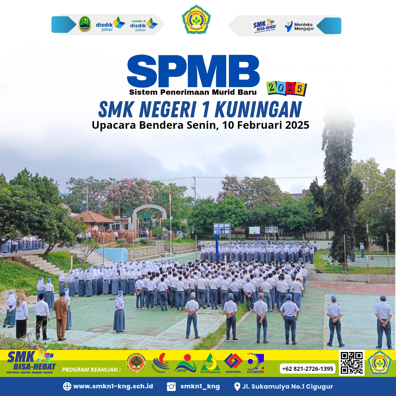 Pada hari Senin, 10 Februari 2025, SMKN 1 Kuningan melaksanakan upacara bendera di halaman sekolah. Upacara ini dimulai dengan lagu Indonesia Raya, diikuti dengan pengibaran bendera merah putih yang diiringi dengan semangat kebangsaan. Upacara ini dipimpin oleh petugas upacara dari siswa-siswi yang telah dipilih dengan baik.